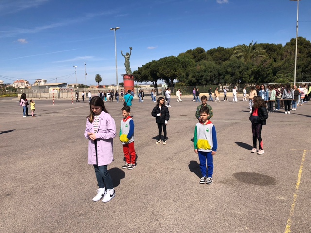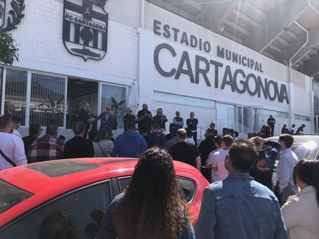 Y a las once de la mañana ya estaba nuestro tercio marcando el paso por los alrededores del estadio Cartagonova, en el último ensayo antes de la procesión. Les acompañaban el grupo de banderines y los monaguillos.
